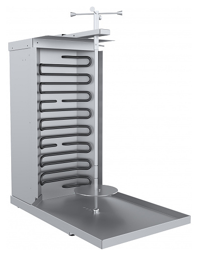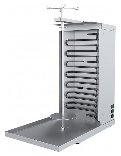 Гриль для шаурмы ПищТех ШШЭ-3-М используется на предприятиях общественного питания и торговли для приготовления мясной начинки для шаурмы. Модель оснащена вертикально-ориентированным жарочным блоком с 2 нагревательными элементами (ТЭНами) и вертелом. Корпус выполнен из нержавеющей стали.