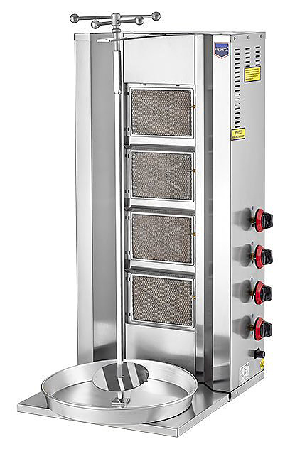 Гриль для шаурмы Remta D08Z предназначен для обжарки большого количества различных видов мяса и птицы для приготовления начинки для шаурмы, донера и других блюд на предприятиях общественного питания и торговли. Модель оснащена системой независимой регулировки каждой инфракрасной горелки. Корпус выполнен из нержавеющей стали AISI 304.