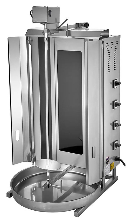 Гриль для шаурмы Remta SD17 предназначен для обжарки большого количества различных видов мяса и птицы для приготовления начинки для шаурмы, донера и других блюд на предприятиях общественного питания и торговли. Модель оснащена системой независимой регулировки каждого ТЭНа с 2 режимами мощности нагрева. Корпус выполнен из нержавеющей стали AISI 304.
