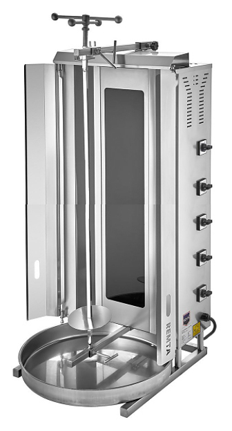 Гриль для шаурмы Remta SD19 предназначен для обжарки большого количества различных видов мяса и птицы для приготовления начинки для шаурмы, донера и других блюд на предприятиях общественного питания и торговли. Модель оснащена системой независимой регулировки каждого ТЭНа с 2 режимами мощности нагрева. Корпус выполнен из нержавеющей стали AISI 304.
