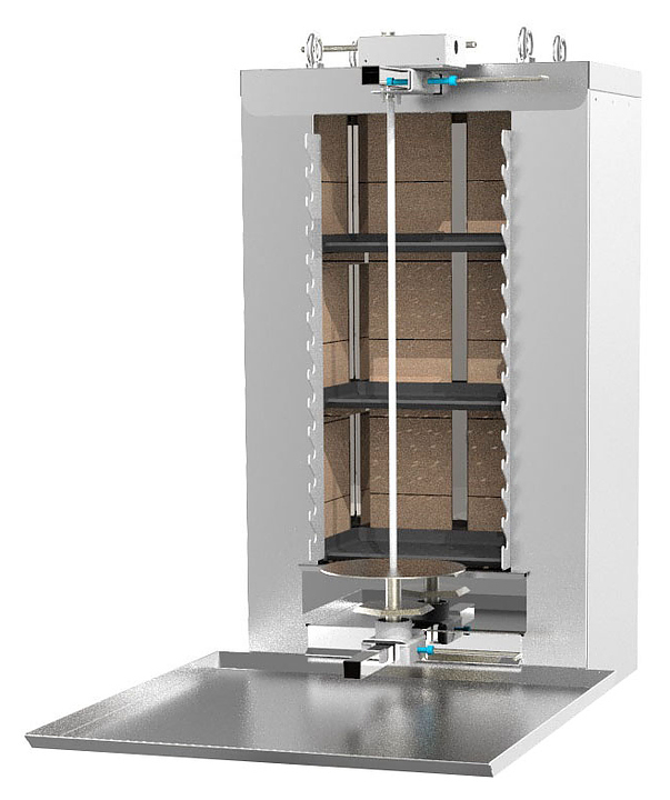 Электрический гриль Vesta ШУ-3 используется на предприятиях общественного питания и торговли для приготовления мясной начинки популярного блюда шаурма (шаверма). Камера выложена из шамотного кирпича.