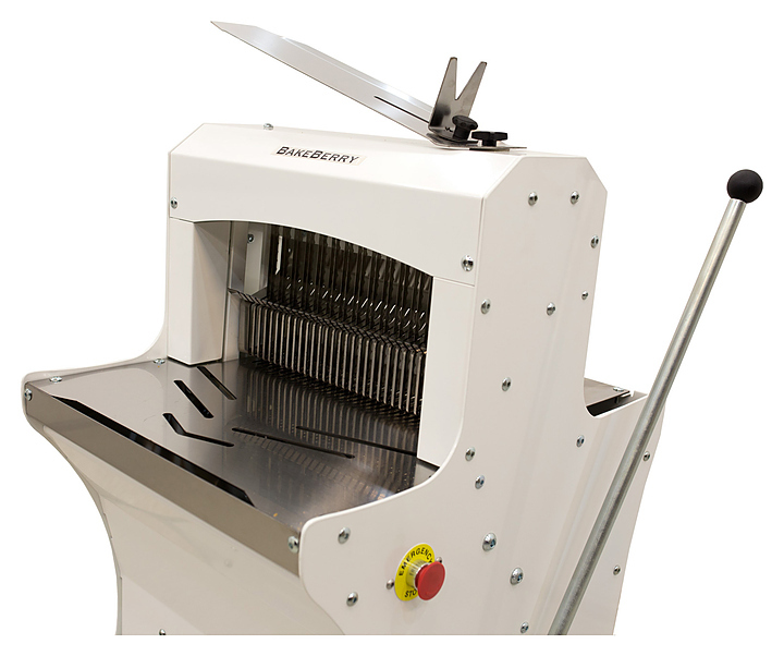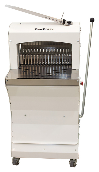 Хлеборезка BakeBerry FB-420 используется на предприятиях общественного питания и торговли, а также в производственных цехах для автоматизации процесса нарезания буханок хлеба и батонов на равные и ровные кусочки. Корпус выполнен из углеродистой стали и покрыт молотковой эмалью, толкатель и разделочный стол - из нержавеющей стали.