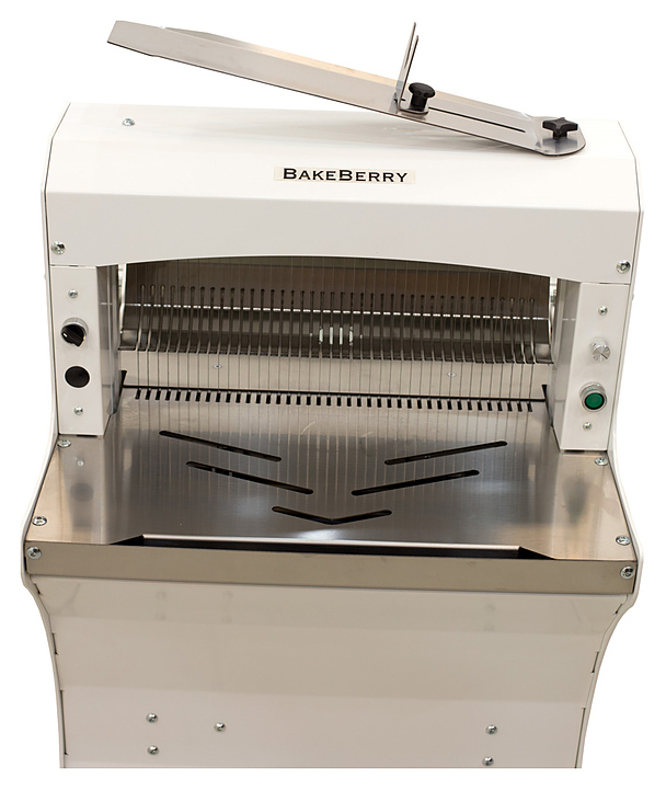 Хлеборезка BakeBerry FT-520 используется на предприятиях общественного питания и торговли, а также в производственных цехах для автоматизации процесса нарезания буханок хлеба и батонов на равные и ровные кусочки. Корпус выполнен из углеродистой стали и покрыт молотковой эмалью, толкатель и разделочный стол - из нержавеющей стали.