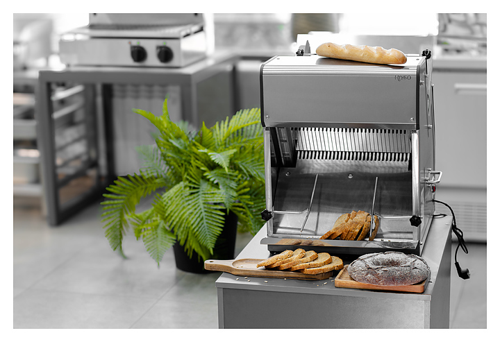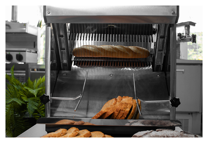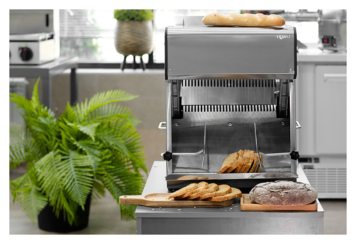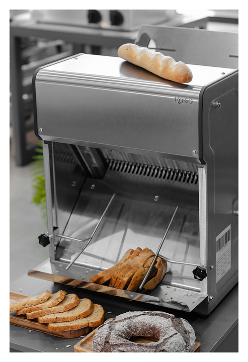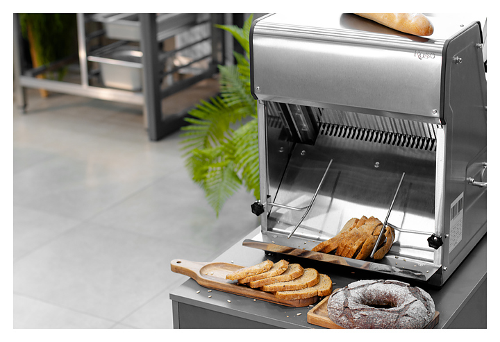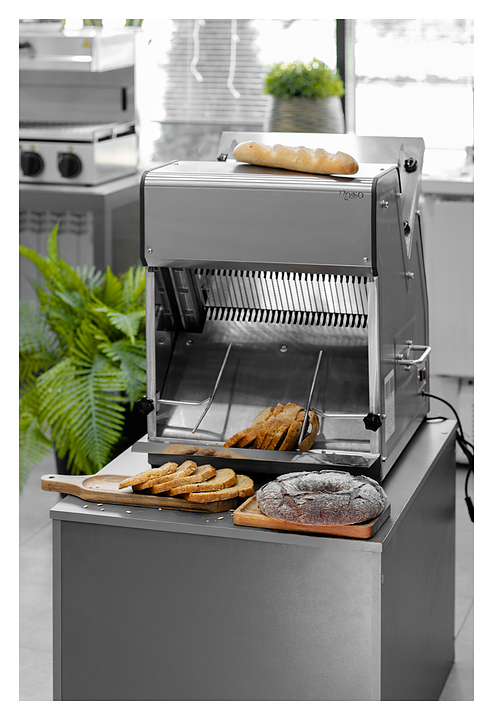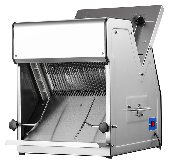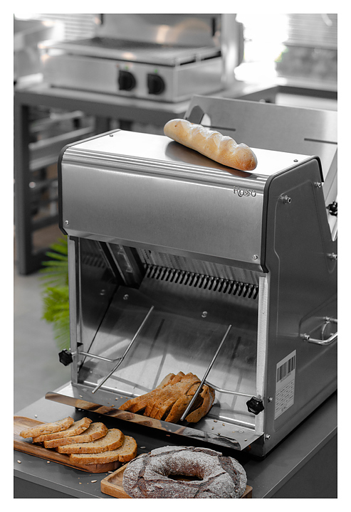 Хлеборезка ROSSO TR31A используется на предприятиях общественного питания и торговли для автоматизации ручной нарезки хлеба на ломтики. Корпус выполнен из нержавеющей стали.