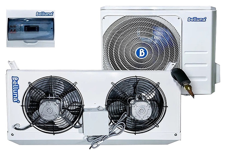 Холодильная сплит-система Belluna U310i серии Инвертер Профи используется на предприятиях общественного питания, торговли и других объектах различных отраслей для поддержания необходимого температурного режима в соответствующей холодильной камере. Модель состоит из наружного блока, внутреннего блока – воздухоохладителя и выносного щита управления. Наружный блок имеет корпус, теплообменник, двигатель с крыльчаткой, смотровое окно, фильтр осушитель, запорные вентили, сервисные порты давления, автоматику, защитную решетку и крышку для вентилей, воздухоохладитель оснащен системой вентиляторов с защитными решетками, щит – откидной прозрачной защитной крышкой.