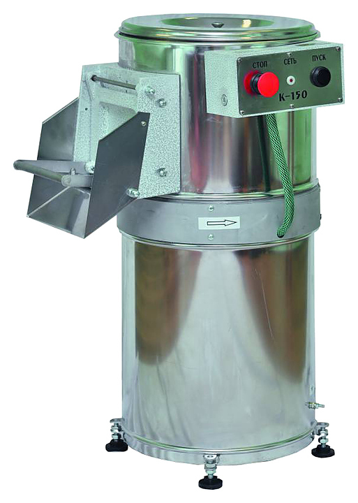 Картофелечистка ТОРГМАШ К-150 используется на предприятиях общественного питания и торговли для очистки картофеля и других корнеплодов (свекла, морковь) от кожуры. Загрузка картофеля осуществляется через загрузочную воронку, а выгрузка очищенного картофеля - через лоток при вращающемся абразивном диске. Облицовка, терочный диск, загрузочный лоток и крышка выполнены из нержавеющей стали.