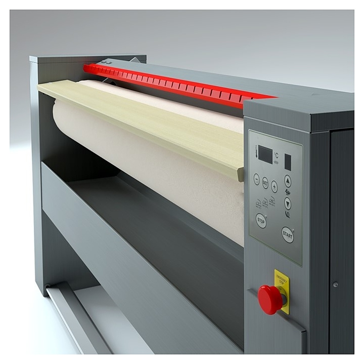 Роликовый гладильный каток EOLO MG05 предназначен для глажки простыней, скатертей, штор, полотенец и другого белья с плоской структурой в прачечных, гостиницах, салонах красоты, медицинских и детских учреждениях. Модель оснащена устойчивыми опорами и кнопочной панелью управления с цифровым дисплеем. Мульда выполнена из экструдированного анодированного алюминиевого профиля, ролик с обмоткой из 3 слоев мягкой стальной ваты, 2 слоев джута и покрытием из хлопчатой ткани, направляющая планка – из дерева, термоизоляция – из керамического волокна.