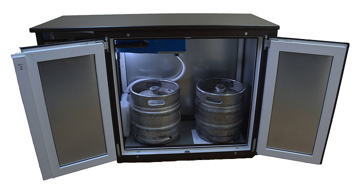 Кегератор барный Berk 2 кеги (модель №1) представляет из себя готовую барную стойку и предназначен для хранения и розлива кегов (бочек) с разливным пивом и другими напитками на предприятиях общественного питания и торговли. Модель оснащена контроллером управления, автоматической принудительной оттайкой и хладагентом R134. Оборудование будет использоваться максимально эффективно, если все кеги в нем будут подключены к розливу, а кеги, составляющие товарный запас, будут храниться в отдельном холодильнике.