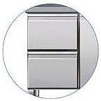 Комплект из 2 ящиков Cooleq используется совместно с холодильными и морозильными столами GN2200BT, GN3200BT, GN2100TN, GN2200TN, GN3100TN, GN3200TN и GN4200TN на предприятиях общественного питания и торговли. Ящики выполнены из нержавеющей стали.