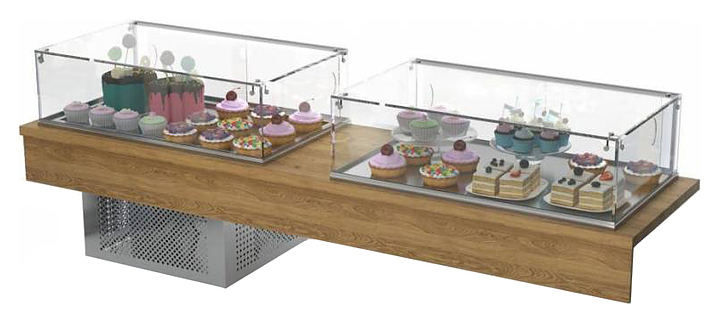 Комплект витрин КАМИК ВХ-341854 серии 1200 используется на предприятиях общественного питания и торговли для охлаждения, демонстрации и кратковременного хранения продуктов и готовых блюд. Модель оснащена защитным куполом и полкой. Корпус выполнен из нержавеющей стали AISI 430 толщиной 1 мм, столешница - из нержавеющей стали AISI 304 толщиной 1 мм, купол и полка - из каленого стекла толщиной 10 мм.