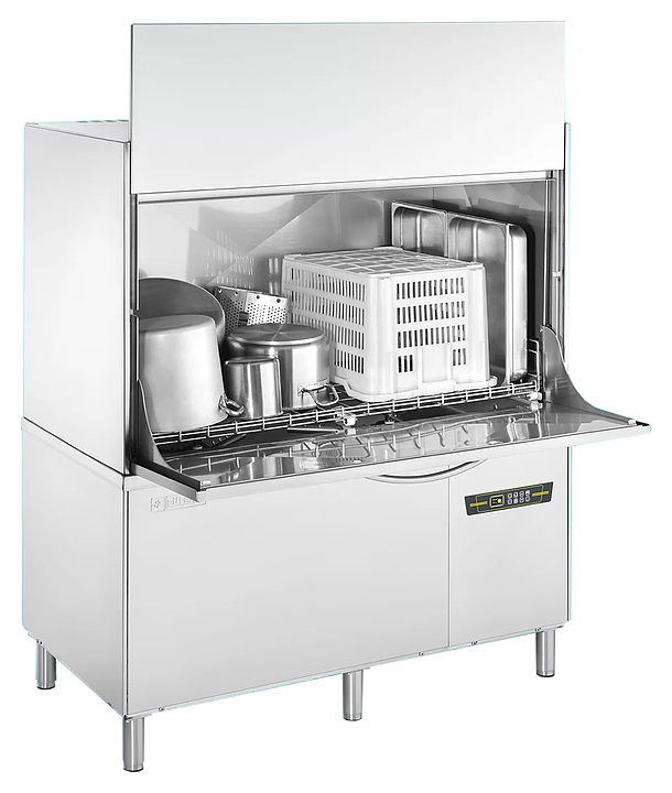 Котломоечная машина Elframo LP 130 VE используется на предприятиях общественного питания для мойки котлов, гастроемкостей и кухонного инвентаря. Модель оснащена электронной панелью управления. Рама, корпус и бойлер выполнены из нержавеющей стали AISI 304 с двойными стенками, поверхностные фильтры бака, моющие и ополаскивающие рукава - из нержавеющей стали.