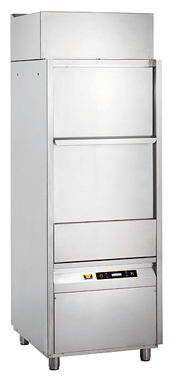 Котломоечная машина Vortmax PWE 782P используется на предприятиях общественного питания и торговли для мойки больших кастрюль, тарелок, стаканов, бокалов, столовых приборов, а также гастроемкостей и противней. Оборудование подключается к горячей воде. Модель с электронной панелью управления оснащена цельнотянутой ванной со скругленными углами, дозаторами моющего и ополаскивающего средств, атмосферным бойлером, ополаскивающей помпой и двойными стенками для термо- и шумоизоляции. Моечные рукава выполнены из нержавеющей стали.