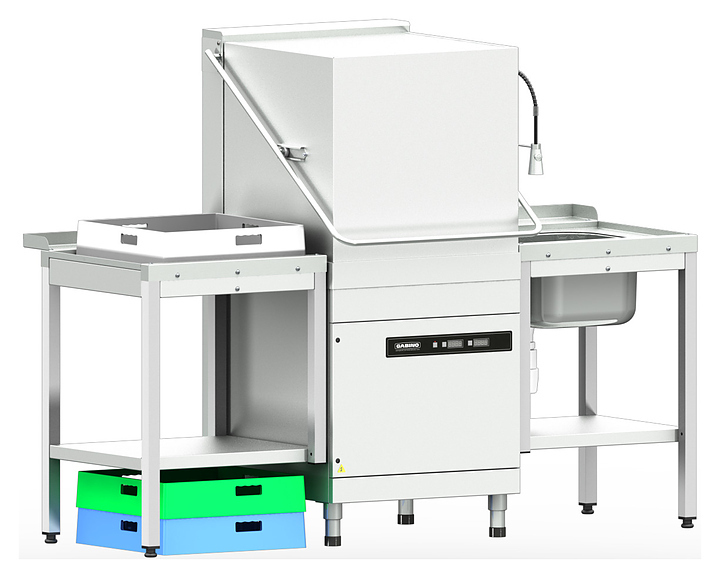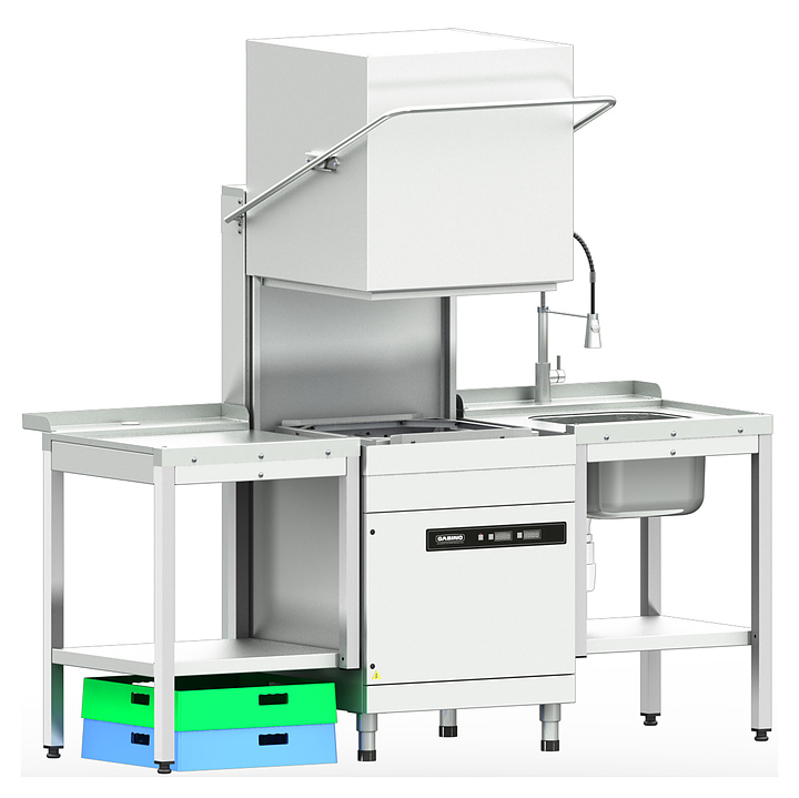 Купольная посудомоечная машина Gabino LM-C-1100 используется на предприятиях общественного питания и торговли для мойки тарелок, стаканов, бокалов, столовых приборов, кастрюль и котлов. Модель оснащена электронной панелью управления. Корпус выполнен из нержавеющей стали, основные детали разбрызгивателей – из кислотостойкой нержавеющей стали AISI 321.