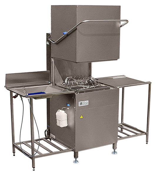 Купольная посудомоечная машина ГродТогрМаш МПУ-700-01 предназначена для мытья тарелок, суповых мисок, стаканов, чашек, столовых приборов и подносов размером не более 530х325 мм на предприятиях общественного питания с числом посадочных мест до 50. Модель оснащена кнопочной электронной панелью управления. Корпус машины изготовлен из шлифованной нержавеющей стали.