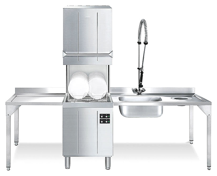 Купольная посудомоечная машина Smeg HTY500D серии Ecoline используется на предприятиях общественного питания и торговли для мойки столовых приборов, тарелок, стаканов, чашек и другой посуды. Модель оснащена электромеханической панелью управления. Корпус, моющие и ополаскивающие рукава выполнены из нержавеющей стали AISI 304.
