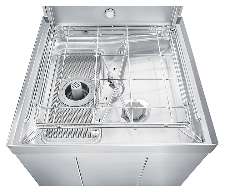 Купольная посудомоечная машина Smeg HTY520D серии Topline используется на предприятиях общественного питания и торговли для мойки столовых приборов, тарелок, стаканов, чашек и другой посуды. Модель оснащена электронной панелью управления. Корпус, моющие и ополаскивающие рукава выполнены из нержавеющей стали AISI 304.