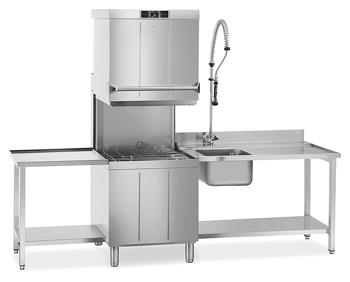 - Система ополаскивания с атмосферным бойлером и насосом ополаскивания HTR (температура поверхности посуды достигает 70 °С в течение 1 минуты)
