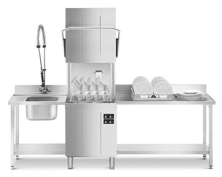 Купольная посудомоечная машина Smeg SPH500 серии Ecoline используется на предприятиях общественного питания и торговли для мойки столовых приборов, тарелок, стаканов, чашек и другой посуды. Модель оснащена электромеханической панелью управления и регулируемыми по высоте ножками. Цельнотянутый бак выполнен из нержавеющей стали AISI 304, фильтр, моющий и ополаскивающий рукава - из нержавеющей стали, задняя панель - из окрашенной стали.