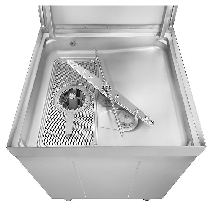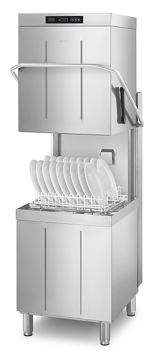 Купольная посудомоечная машина Smeg SPH503 серии Ecoline используется на предприятиях общественного питания и торговли для мойки столовых приборов, тарелок, стаканов, чашек и другой посуды. Модель оснащена электронной панелью управления и регулируемыми по высоте ножками. Корпус, моющие и ополаскивающие рукава выполнены из нержавеющей стали AISI 304.