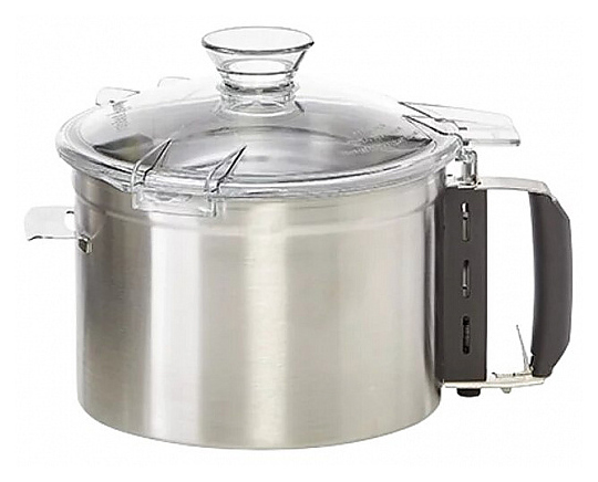 В комплект поставки входит чаша 5,9 л из нерж. стали и гладкий нож и инструмент для очистки ножа.