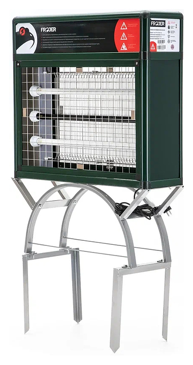 Инсектицидная лама FROJER PRO XC40-FSL предназначена для привлечения ультрафиолетовым излучением и уничтожения электрическим током комаров, мух, мотыльков и прочих летающих вредителей посредством находящихся под высоким напряжением металлических решеток в залах кафе, ресторанов и на других предприятиях общественного питания. Корпус выполнен из алюминиевого сплава.