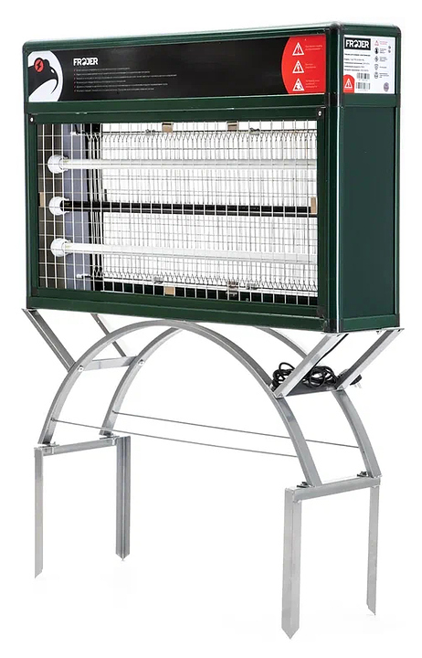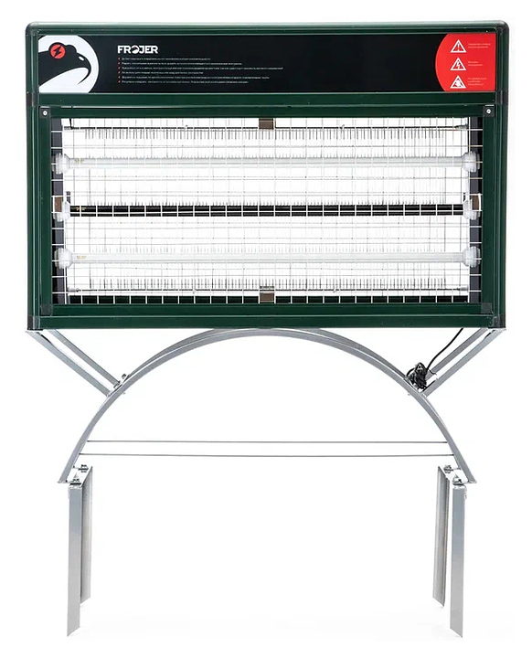 Инсектицидная лама FROJER PRO XC60-FSL предназначена для привлечения ультрафиолетовым излучением и уничтожения электрическим током комаров, мух, мотыльков и прочих летающих вредителей посредством находящихся под высоким напряжением металлических решеток в залах кафе, ресторанов и на других предприятиях общественного питания. Корпус выполнен из алюминиевого сплава.