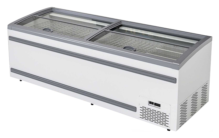 Морозильный ларь-бонета Марихолодмаш Корсика ЛХН-2500 Push предназначен для демонстрации, заморозки и хранения продуктов, полуфабрикатов и мороженого на предприятиях торговли и общественного питания. Корпус выполнен из окрашенной оцинкованной стали с пенополиуретановым заполнением, внутренняя облицовка и полки - из стали, окрашенной белой порошковой краской, крышка - из стекла.
