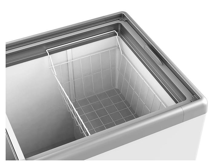 Морозильный ларь Aucma SD-600 предназначен для охлаждения, заморозки, кратковременного и длительного хранения пищевых продуктов таких как мясо, овощи, полуфабрикаты и мороженое на малых предприятиях общественного питания и торговли, гостиничных комплексах, офисах и домашних условиях. Модель оснащена горизонтально ориентированной рабочей камерой с раздвижными дверьми сверху с небольшими уплощенными рукоятками, кабелем питания с евровилкой и расположенной в нижней части боковой стенки электромеханической панелью управления. Корпус выполнен из металла с антикоррозийным покрытием белого цвета, верхняя окантовка корпуса – из формованного АБС пластика с серебристой поверхностью, внутренние стенки камеры – из пластифицированного металла с белой поверхностью, крышки – из безопасного закаленного стекла в пластиковой раме, корзины – из металла с полимерным покрытием.