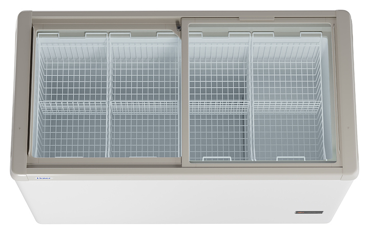 Морозильный ларь Haier SD-405 FPEL предназначен для демонстрации, заморозки и длительного хранения продуктов и полуфабрикатов на предприятиях общественного питания и торговли. Модель оснащена электронным контроллером с сенсорным дисплеем, 2 раздвижными дверями с прямым закаленным теплоотражающим стеклом со специальным покрытием и 4 усиленными прорезиненными колесами, 2 из которых поворотные. Испаритель и конденсатор выполнены из оцинкованной стали, верхняя рамка - из формованного ABS пластика, съемные корзины из стального прута с полимерным покрытием.