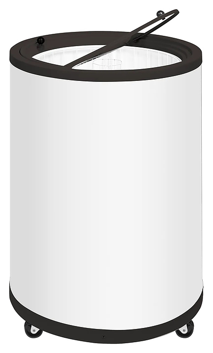 Морозильный ларь TEFCOLD CF78 предназначен для демонстрации и предпродажного хранения мороженого, полуфабрикатов и других замороженных гастрономических товаров в точках импульсных продаж, на других предприятиях торговли и общественного питания. Модель цилиндрической формы оснащена крышкой с 2 откидными створками с ручками и расположенной на внешней стороне основания электромеханической панелью управления. Внутренняя облицовка выполнена из оцинкованной стали с покрытием порошковой краской белого цвета, экстерьер корпуса белого цвета, крышка – из прозрачного акрила.