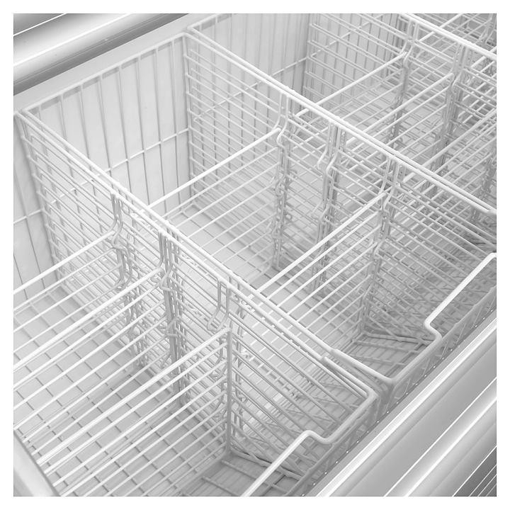 Морозильный ларь TEFCOLD TD500 предназначен для заморозки и длительного хранения продуктов и полуфабрикатов на предприятиях общественного питания и торговли. Модель оснащена 2 уровнями морозильных камер, 4 гнутыми раздвижными дверьми, 10 корзинами, 4 колесами и замком. Двери выполнены из закаленного стекла.