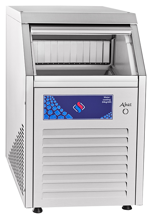 Льдогенератор Abat ЛГ-24/06К-01 предназначен для производства кубикового льда на предприятиях общественного питания и торговли. Модель оснащена отодвигающейся вовнутрь дверцей, системой автоматического отключения в случае отсутствия подачи воды на охлаждение конденсатора, утечки хладагента, повышенной нагрузки на мотор-редуктор и переполнения бункера льдом и регулируемыми по высоте ножками.