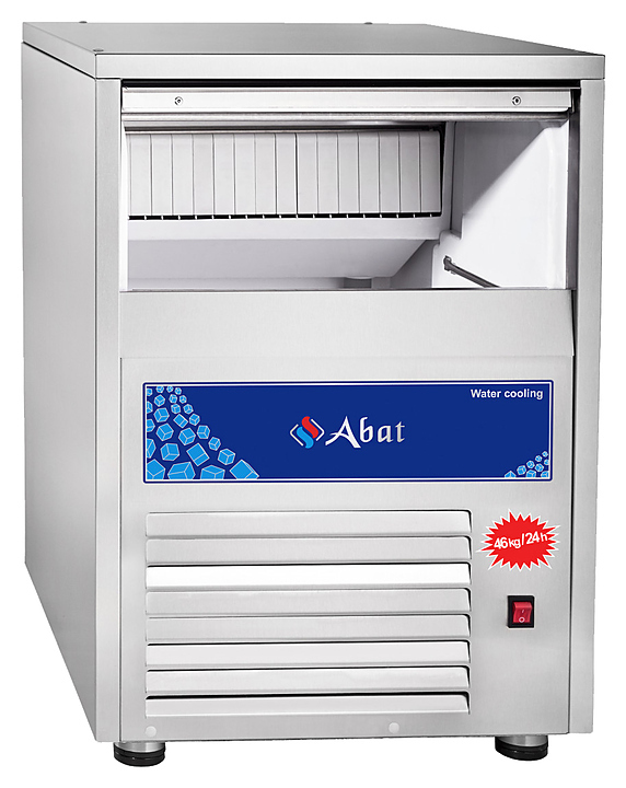 Льдогенератор Abat ЛГ-46/15К-01 предназначен для производства кубикового льда на предприятиях общественного питания и торговли. Модель оснащена отодвигающейся вовнутрь дверцей, системой автоматического отключения в случае отсутствия подачи воды на охлаждение конденсатора, утечки хладагента, повышенной нагрузки на мотор-редуктор и переполнения бункера льдом и регулируемыми по высоте ножками.