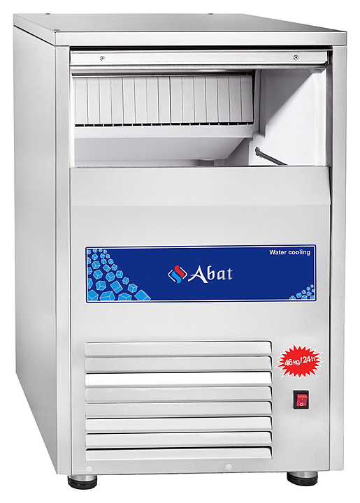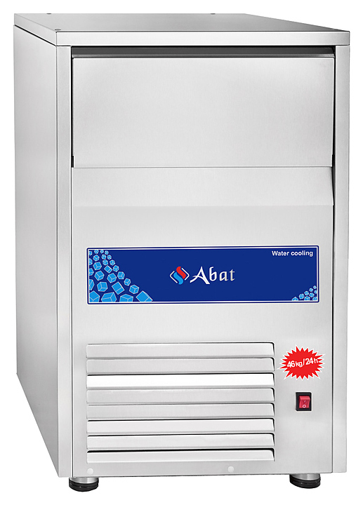 Льдогенератор Abat ЛГ-46/25К-01 предназначен для производства кубикового льда на предприятиях общественного питания и торговли. Модель оснащена отодвигающейся вовнутрь дверцей, системой автоматического отключения в случае отсутствия подачи воды на охлаждение конденсатора, утечки хладагента, повышенной нагрузки на мотор-редуктор и переполнения бункера льдом и регулируемыми по высоте ножками.