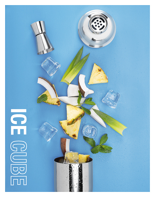Лед конусообразной формы со слегка приплюснутыми краями. Подходит для бокалов любой формы. Кристально чистый и плотный, охлаждает напиток, не разбавляя.
