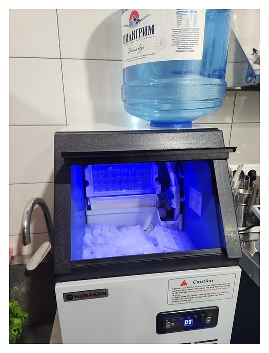 Льдогенератор Hurakan HKN-IMC25 предназначен для производства кубикового льда соединенного в пластину, по форме напоминающего плитку шоколада, на предприятиях общественного питания и торговли. Модель подключается как к водопроводу, так и к бутыли на 19-20 л, которая устанавливается на верхнюю часть льдогенератора. Корпус выполнен из нержавеющей стали.
