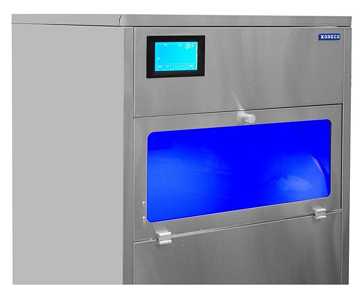 Льдогенератор Koreco AZ150/30MAR используется на предприятиях пищевой промышленности и торговли для производства чешуйчатого льда для выкладки мясных блюд, рыбы и гастрономии. Корпус выполнен из нержавеющей стали AISI 201, камера - из ABS-пластика, теплоизоляция - из пенополиуритана.