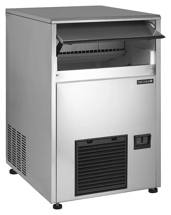 Автоматический льдогенератор TEFCOLD TC57 предназначен для приготовления кубикового льда, используемого для охлаждения различных напитков на предприятиях общественного питания и торговли. Модель оснащена компрессорным агрегатом, фронтально расположенным бункером с откидной дверцей и панелью управления. Корпус выполнен из высококачественной нержавеющей стали марки SS304.