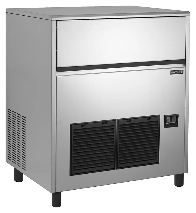 Автоматический льдогенератор TEFCOLD TC85 предназначен для приготовления кубикового льда, используемого для охлаждения различных напитков на предприятиях общественного питания и торговли. Модель оснащена компрессорным агрегатом, фронтально расположенным бункером с откидной дверцей и панелью управления. Корпус выполнен из высококачественной нержавеющей стали марки SS304.