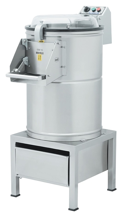 Лукокочистка OZTI SSM10 используется на предприятиях пищевой промышленности, общественного питания и торговли для автоматической мойки и очистки репчатого лука от кожуры путем трения продукта о вращающиеся внутренние элементы конструкции. Модель оснащена электромеханической панелью управления. Корпус цилиндрической формы и чистящий диск выполнен из нержавеющей стали, верхняя крышка – из поликарбоната.