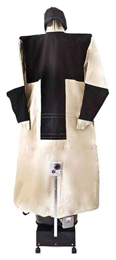 Профессиональный гладильный манекен EOLO SA13 используется в прачечных, отелях и гостевых домах для финишной обработки халатов, платьев и другой длин. Может работать со всеми видами тканей, такими как хлопок, лен, фанель, бархат, шелк или смешанные материалы, размером от XS до XXXL. Манекен не предназначен для тяжелых курток, пиджаков и пуховиков. Модель оснащена вентилятором повышенной мощности, индикатором нагрева и подставкой на колесах. Мощный поток горячего воздуха позволяет высушить ткань, пока одежда хорошо растянута, и отгладить ее без складок. Корпус выполнен из экологически чистых материалов, устойчивых к возгоранию.