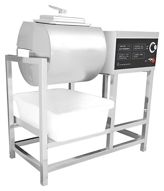 Невакуумный маринатор Hualian MR-40 используется на предприятиях пищевой промышленности, общественного питания и торговли для быстрого маринования мяса, птицы, рыбы и овощей в автоматическом режиме. Модель оснащена барабаном с герметично запираемой крышкой и электромеханической панелью управления. Корпус выполнен из нержавеющей стали.