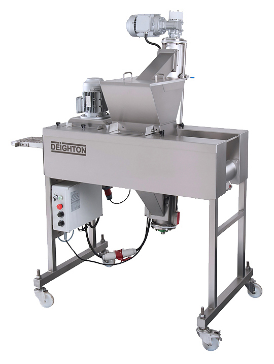Машина Deighton EconoCrumb 200 используется для нанесения сухой панировки при изготовлении полуфабрикатов на предприятиях пищевой промышленности. Машина работает с любыми фракциями панировочных смесей: от муки до специй грубого помола.