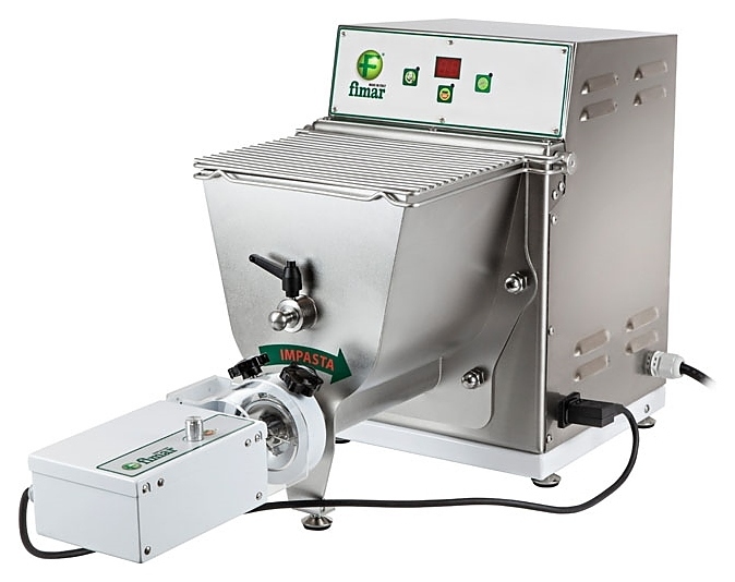 Машина для пасты FIMAR PF25E используется на предприятиях общественного питания и торговли для замешивания и выдавливания теста, а также для формирования его в виде различных макаронных изделий. Модель оснащена предохранительным выключателем на крышке дежи. Корпус выполнен из нержавеющей стали AISI 304.