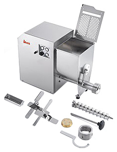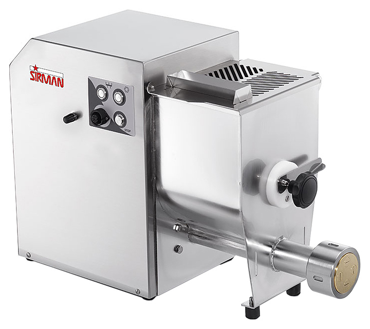 Машина для пасты Sirman Concerto 5 используется на предприятиях общественного питания и торговли для замешивания и выдавливания теста, а также для формирования его в виде различных макаронных изделий. Модель оснащена крышкой и удобной съемной воронкой для добавления жидких ингредиентов. Корпус выполнен из нержавеющей стали AISI 304, чаша - из анодированного алюминия.