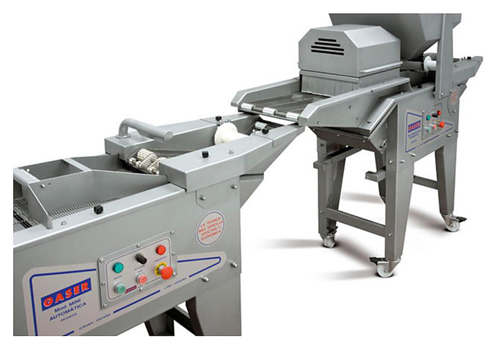 Панировочная машина Gaser Practic-240 предназначена для равномерного обваливания в панировочной смеси мясных, рыбных и овощных заготовок и полуфабрикатов, а также изделий из теста на предприятиях пищевой промышленности, общественного питания и торговли. Модель оснащена 2 внешними баками для сухарей и льезона, опрокидывателем для разгрузки панировочных сухарей и 4 ножками с колесиками. Изделие выполнено из нержавеющей стали и пищевого пластика, колесики - из нержавеющей стали.