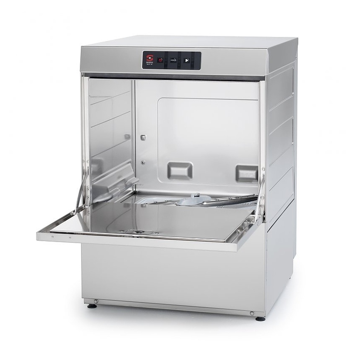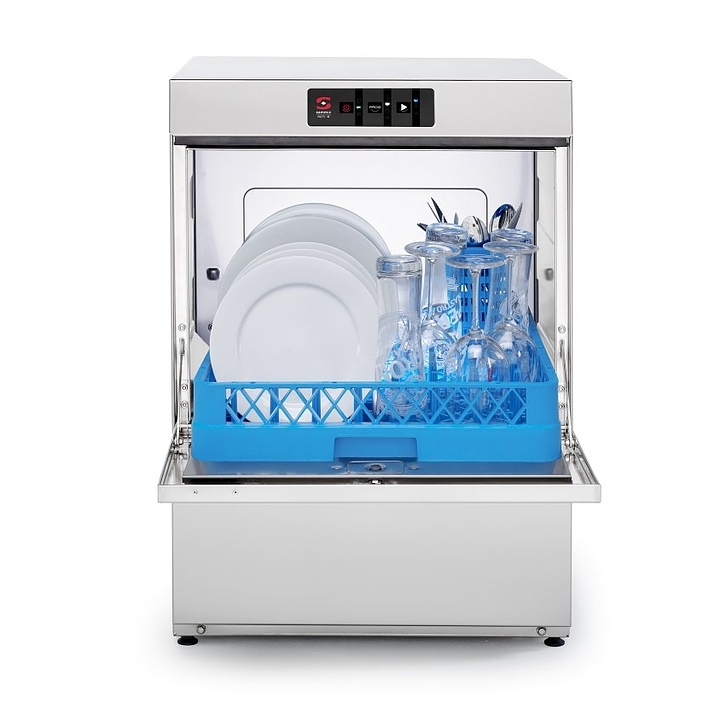 Посудомоечная машина с фронтальной загрузкой Sammic AX-50B DD используется на предприятиях общественного питания и торговли для мойки столовых приборов, тарелок, стаканов, чашек и другой посуды. Модель оснащена трехступенчатой системой фильтрации. Корпус выполнен из нержавеющей стали.