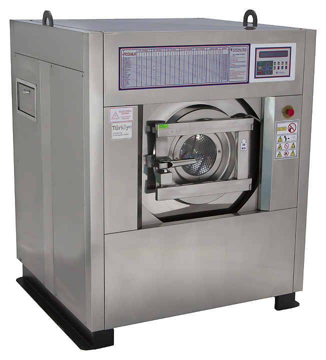Стирально-отжимная машина Kromluks KOCYS-B/100 используется в прачечных образовательных, оздоровительных заведений, производственных предприятий, в поликлиниках, гостиницах, детских садах, общежитиях, больницах, роддомах и воинских частях для стирки, полоскания и отжима белья и одежды. Модель оснащена подрессоренной подвеской барабана. Все поверхности, соприкасающиеся с бельем и водой, а также облицовка корпуса выполнены из нержавеющей стали AISI 304.
