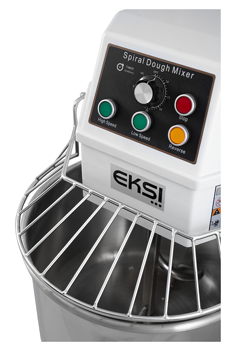 Тестомесильная машина EKSI SH40 используется на предприятиях пищевой промышленности, общественного питания и торговли для замешивания теста различной консистенции при производстве хлебобулочных и кондитерских изделий. Модель оснащена месильным органом в форме спирали, защитной решеткой и электромеханической панелью управления. Дежа выполнена из нержавеющей стали.