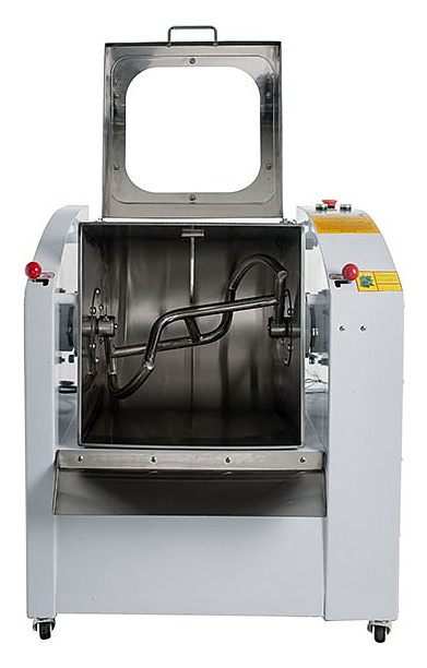 Тестомесильная машина Foodatlas WHM(H)-12,5 используется на предприятиях общественного питания и торговли для замешивания крутого теста при приготовлении пельменей, вареников, мантов и чебуреков. Модель оснащена лопастями в форме буквы J. Корпус выполнен из стали Q235, дежа - из OCr18Ni9, окно в чаше - из закаленного стекла, лопасти - из стали 45, покрытой нержавеющей сталью, шестерни - из стали 40X.